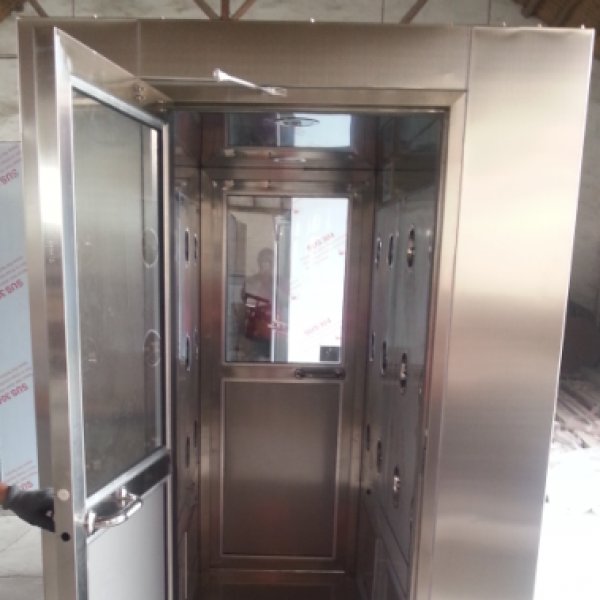 造,風淋室表面采用靜電噴塑,其特點是美觀,現代;其內壁,門還可以用不銹鋼制作,其效